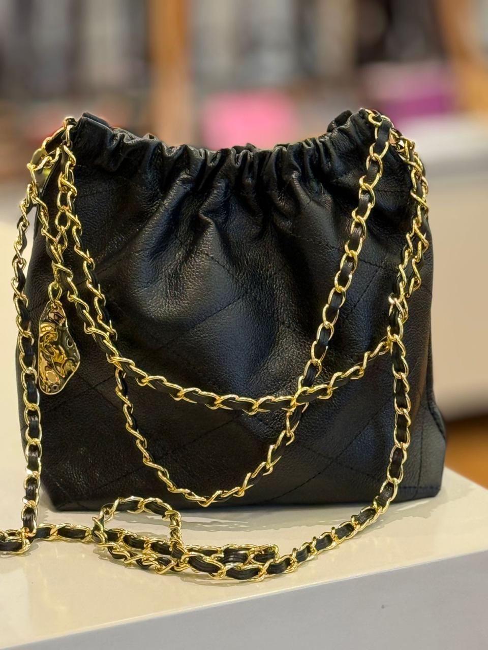 BOLSA SACO METALASSE ALÇA CORRENTE PRETA