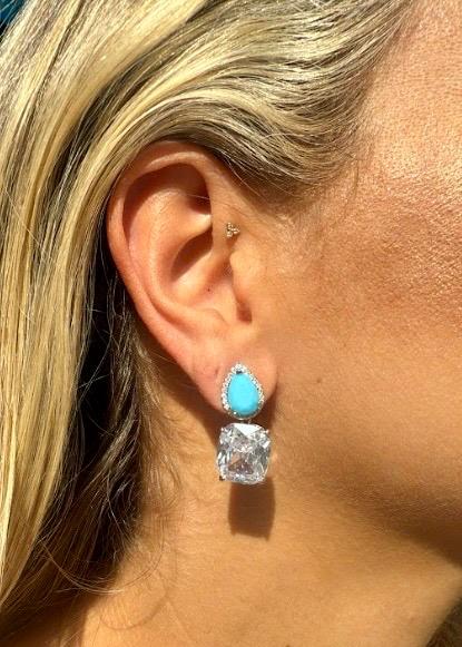 BRINCO BASE CRISTAL QUADRADA GOTA NANO TURQUESA