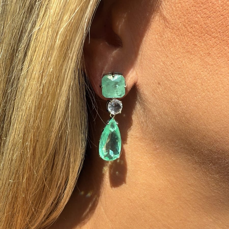 BRINCO BASE QUADRADA C/ GOTA TURMALINA