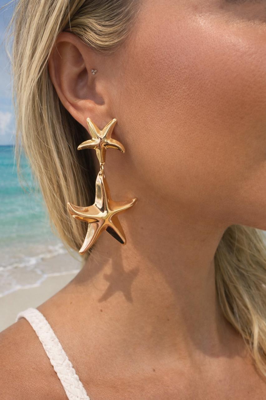 BRINCO DUAS ESTRELA DO MAR ORGANICO DOURADO