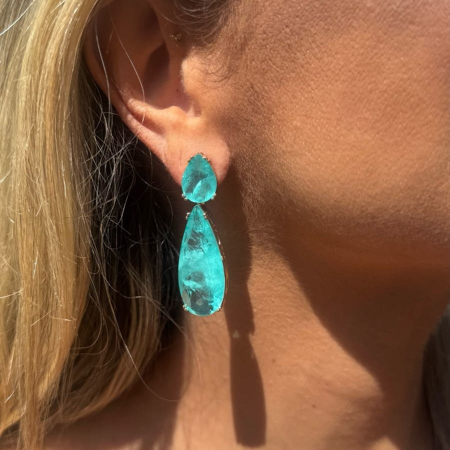 BRINCO DUAS GOTAS GRANDES TURMALINA DOURADO