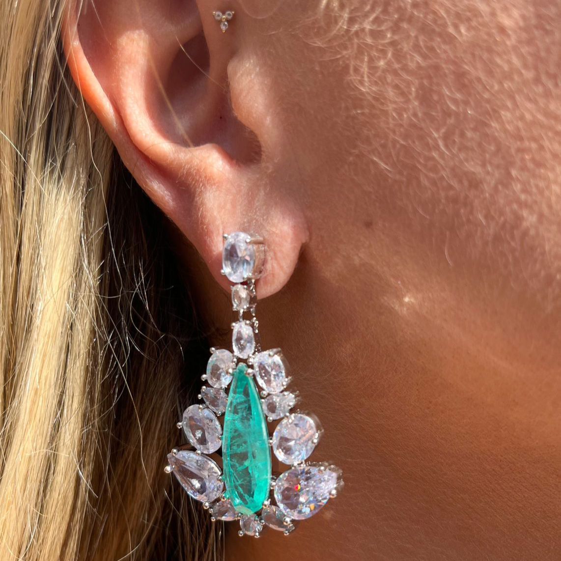 BRINCO EM ZIRCONIA COM PEDRA EM COR TURMALINA