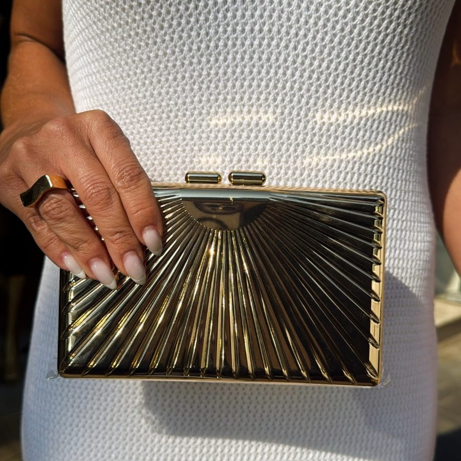 CLUTCH METAL LISTRAS RAIOS SOLARES DOURADA