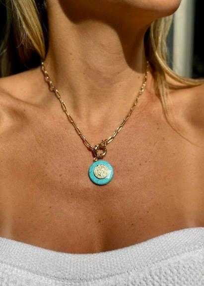 COLAR CORRENTE ELOS PINGENTE SÃO BENTO NANO TURQUESA