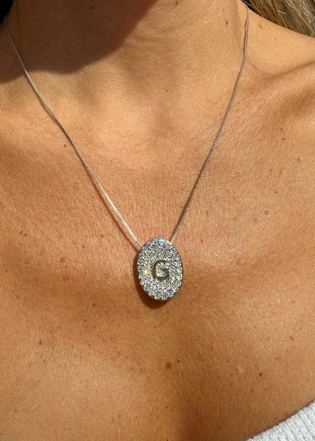 BANHADO EM RODIO BRANCO, COM A LETRA EM OURO