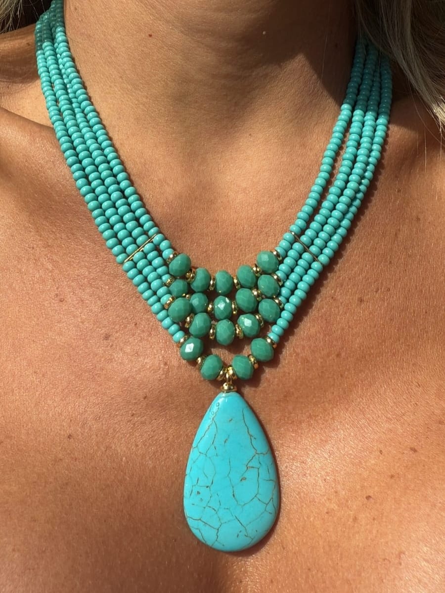 COLAR NANO TURQUESA BANHADO EM OURO