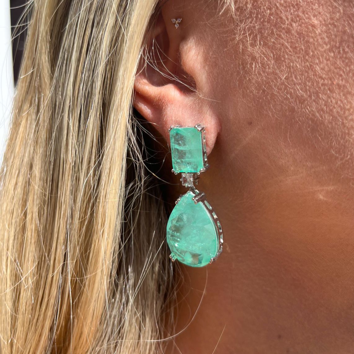 MAXI BRINCO EM COR TURMALINA, COM GARRAS EM BANHO DE RODIO BRANCO