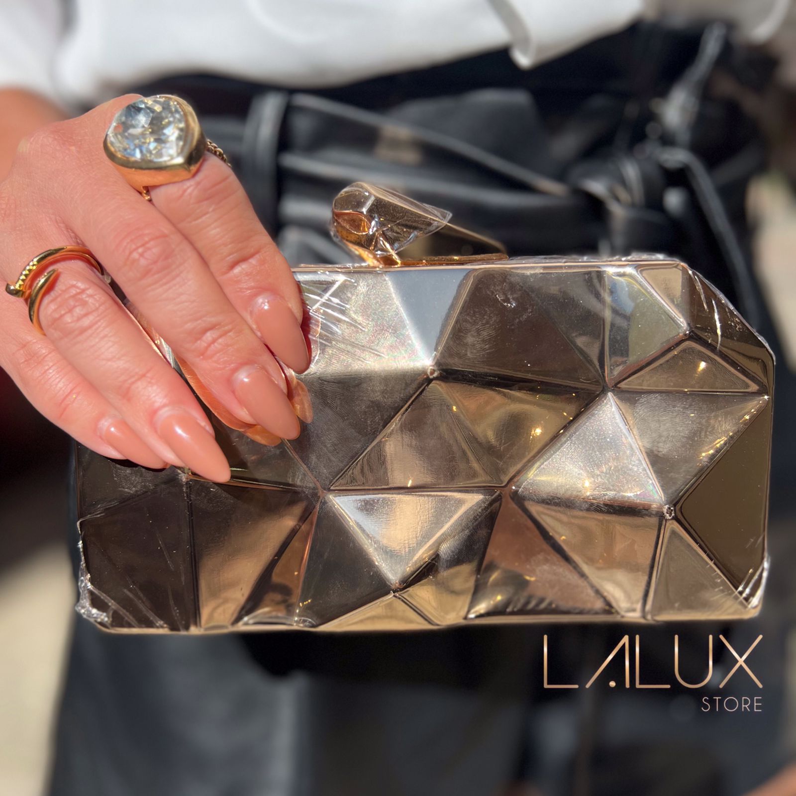 CLUCTH METAL DIAMANTADO DOURADA